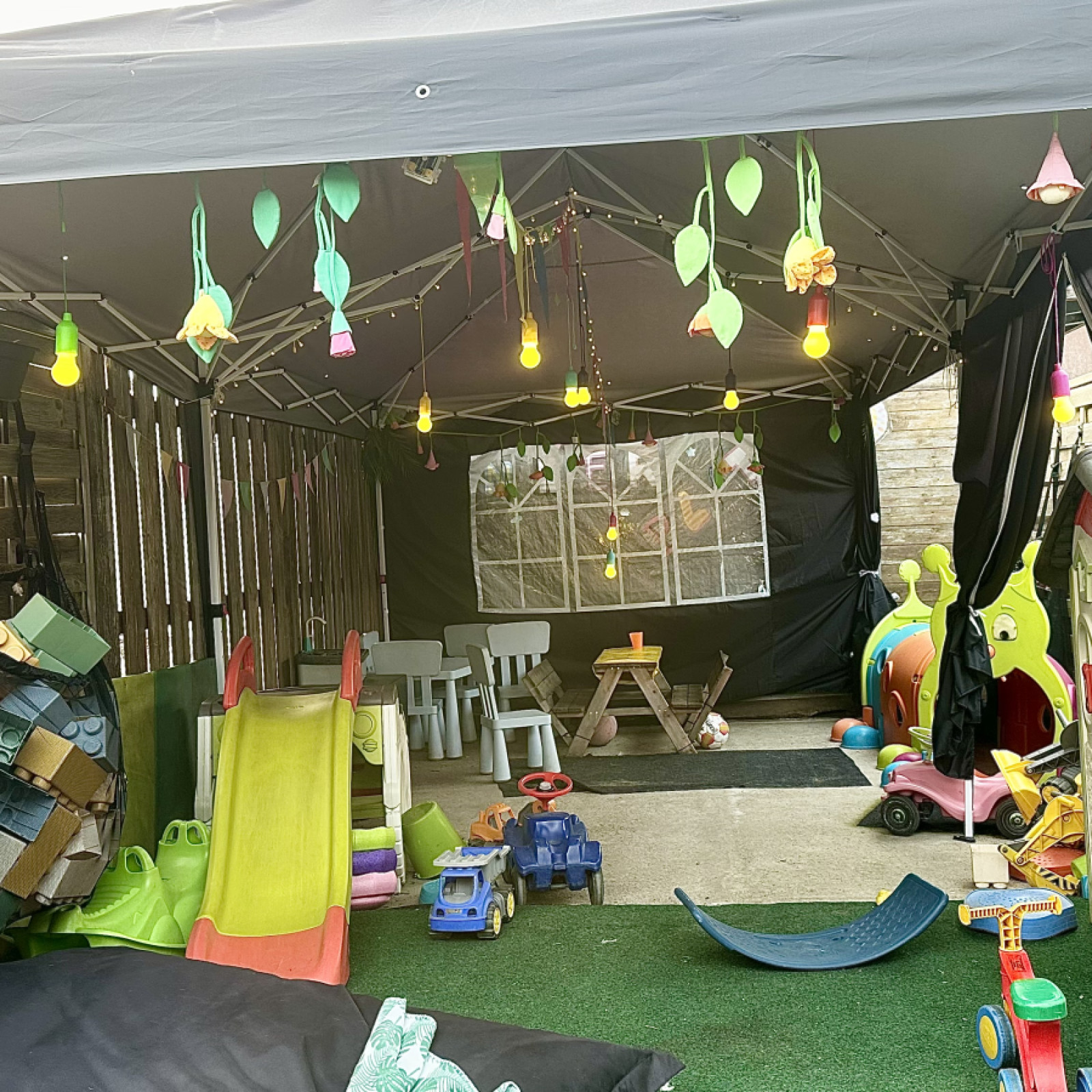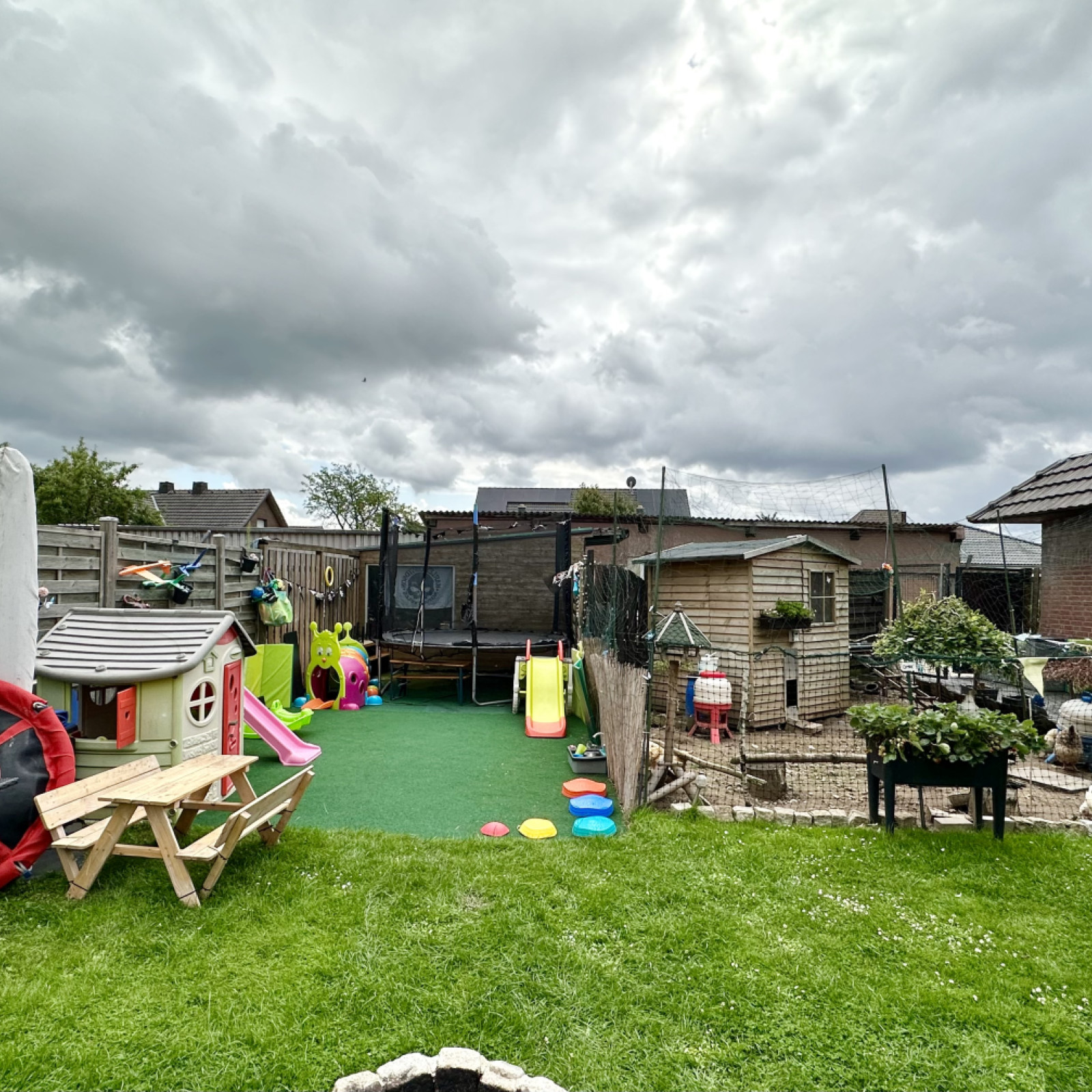 • Garten für Spiel und Spaß, mit eigenen Hühnern, Pavillon, Wickelstation und Früchten zum Ernten (je nach Saison). Der Garten wird auch zum Schlafplatz, wenn das Wetter es zulässt, denn die Kinder schlafen gerne an der frischen Luft.