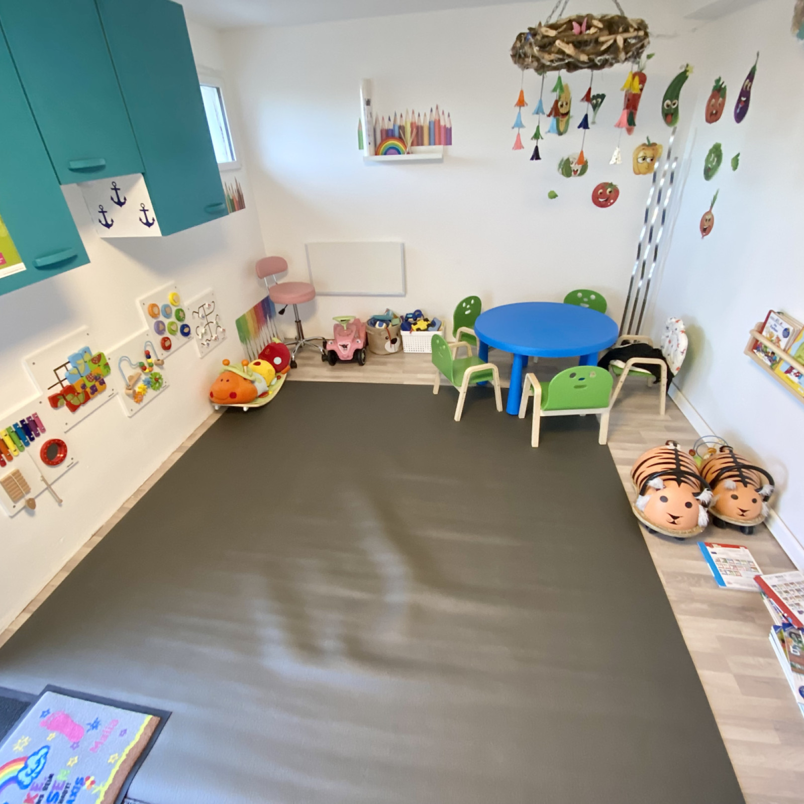 Die Räume meiner Kindertagespflege sind kindgerecht ausgestattet und bieten Platz für vielfältige Entdeckungen. Zusätzlich können wir den Garten mit eigenen Hühnern und 2 Katzen unsicher machen.