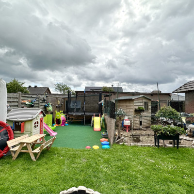 Die Räume meiner Kindertagespflege sind kindgerecht ausgestattet und bieten Platz für vielfältige Entdeckungen. Zusätzlich können wir den Garten mit eigenen Hühnern und 2 Katzen unsicher machen.